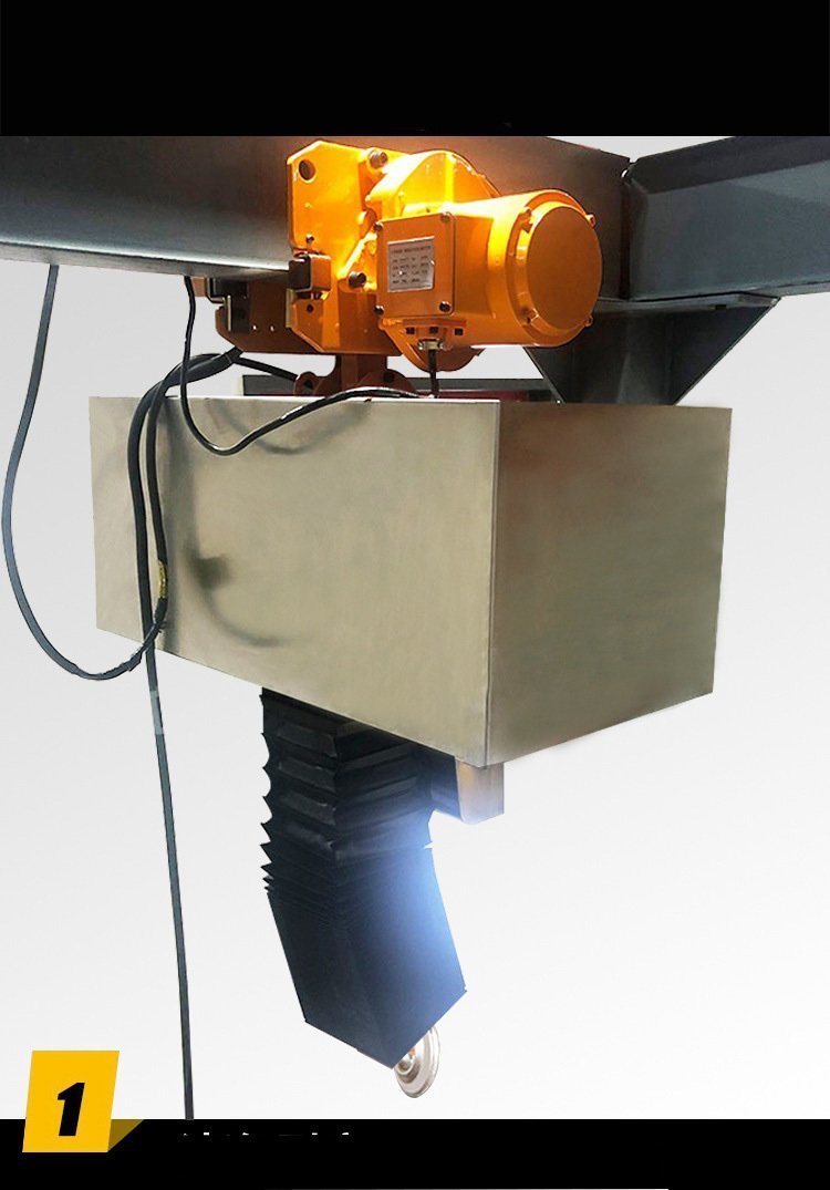 重慶美和機電有限公司最新的潔凈室環(huán)鏈電動葫蘆。潔凈室用環(huán)鏈電動葫蘆基本構(gòu)造系統(tǒng)主要有:電動葫蘆本體、不銹鋼整體防塵罩、伸縮式風(fēng)琴罩、鏈條、尼龍輪、吊鉤等,其中電動葫蘆本體位于防塵罩內(nèi),鏈條連接電動葫蘆本體與下吊鉤,以便提取重物,鏈條位于伸縮式風(fēng)琴罩內(nèi);在鏈條外加伸縮式風(fēng)琴罩防護(hù),對葫蘆本體及鏈條做了特殊的密封防護(hù),防止了粉塵外泄。通過對環(huán)鏈電動葫蘆基本結(jié)構(gòu)的最新改造,大大的阻止了粉塵的產(chǎn)生并減少擴散至外部環(huán)境中。這些保護(hù)部件可以防止油污和灰塵,使環(huán)鏈?zhǔn)诫妱雍J在運行過程中產(chǎn)生的細(xì)小顆粒和殘余雜質(zhì)不會落入根據(jù)工作條件,滿足電子、食品、航空等行業(yè)的特殊要求。